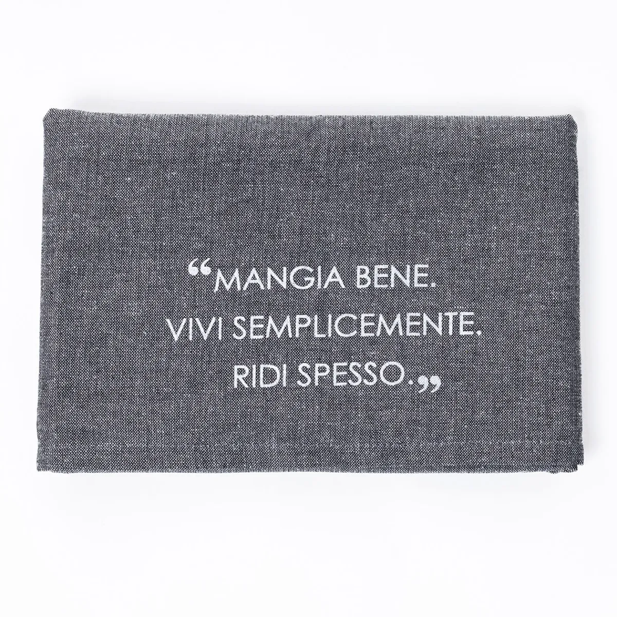Camino de mesa con frase gris oscuro 50x140cm | Algodón | Viste tu mesa y cocina con nuestra colección de textiles de cocina. Manteles, servilletas para servir sin olvidar la funcionalidad de los delantales y paños de cocina. ¡Cada detalle es fundamental! | Color: Gris oscuro | Medidas: 50x140cm | Material: Algodón, Poliéster