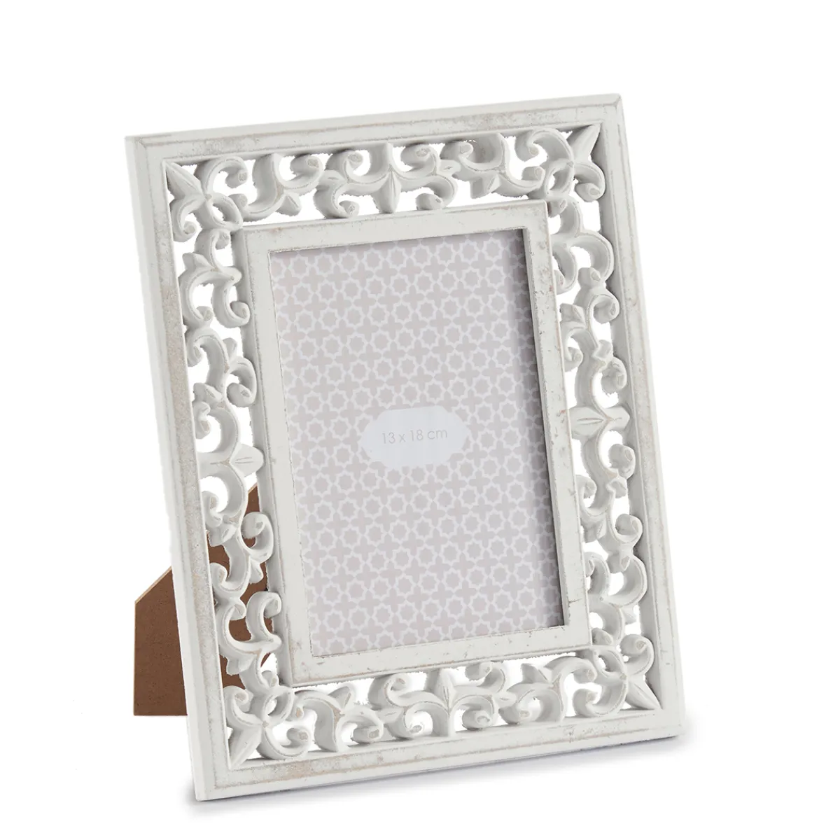 Marcos Y Fotos|Estilo Étnico>Portarretrato tallado blanco de madera 13x18cm