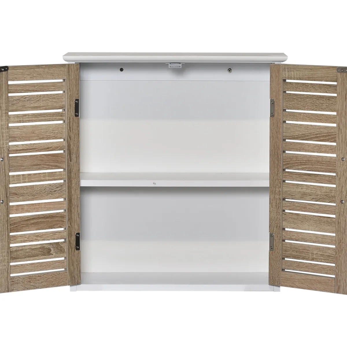 Armario De Pared Con 2 Puertas Y Estante | Descubre nuestra colección de muebles de baño. Varias propuestas de muebles de baño, muebles auxiliares y muebles de lavabo para un espacio lleno de almacenaje y muy actual | Color: Marrón, Blanco | Medidas: 55x22x52cm | Material: Mdf