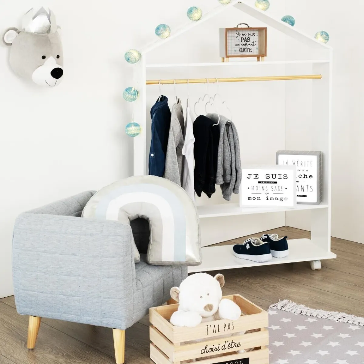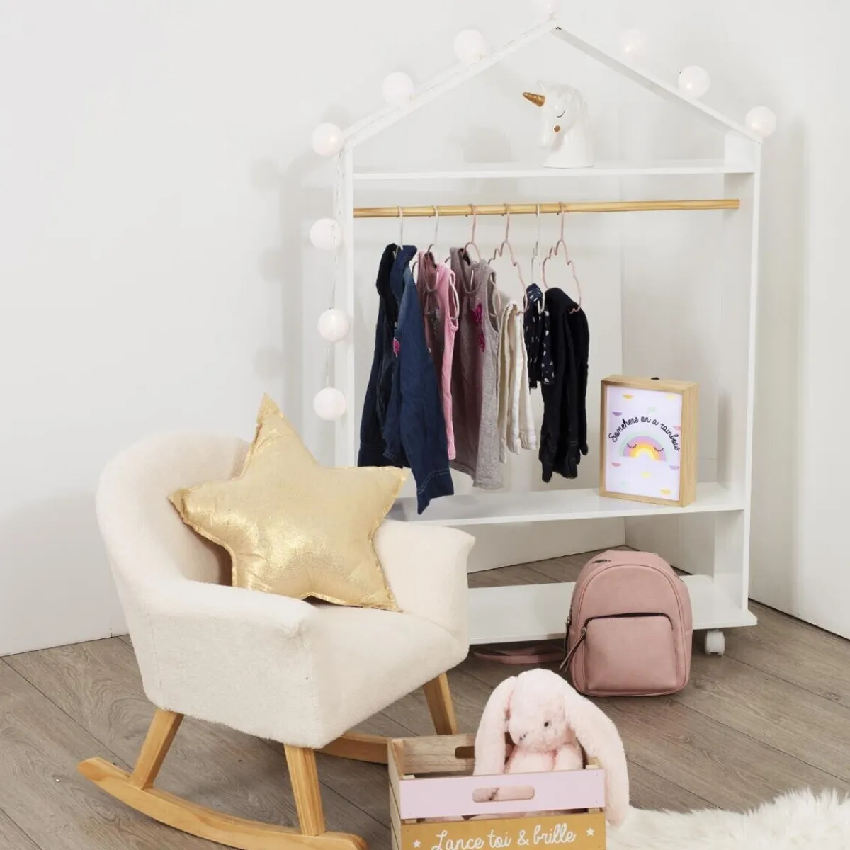 Armario Blanco Con Barra Montessori | Con las soluciones de almacenaje y organización, los niños aprenden desde pequeños que todo tiene su lugar y crecen en espacios organizados. Descubre más propuestas hôma kids en homa.es | Color: Blanco, Natural | Medidas: 126x39x78cm | Material: Mdf | Marca: Atmosphera4Kids