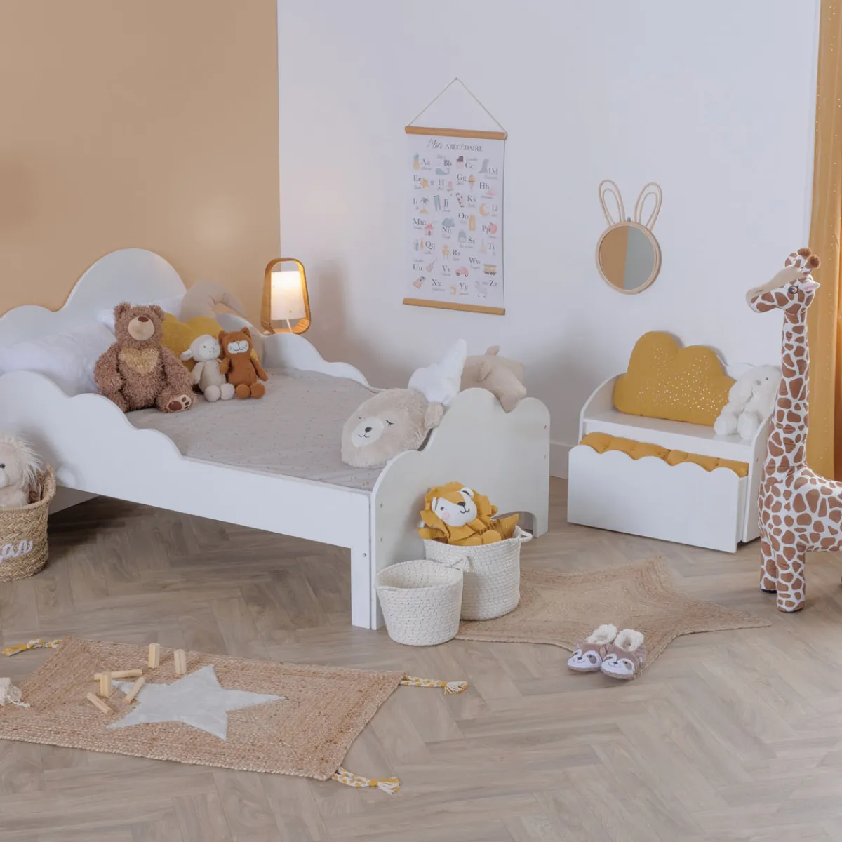 Banco Nube Con Cajonera | ¡Descubre nuestra colección de mobiliario infantil! Con hôma kids es fácil proporcionar aventuras y mundos imaginarios a los más pequeños. Muebles para la habitación del bebé y espacios de juego | Color: Blanco | Medidas: 30×53.4x60cm | Material: Mdf | Marca: Atmopshera4Kids