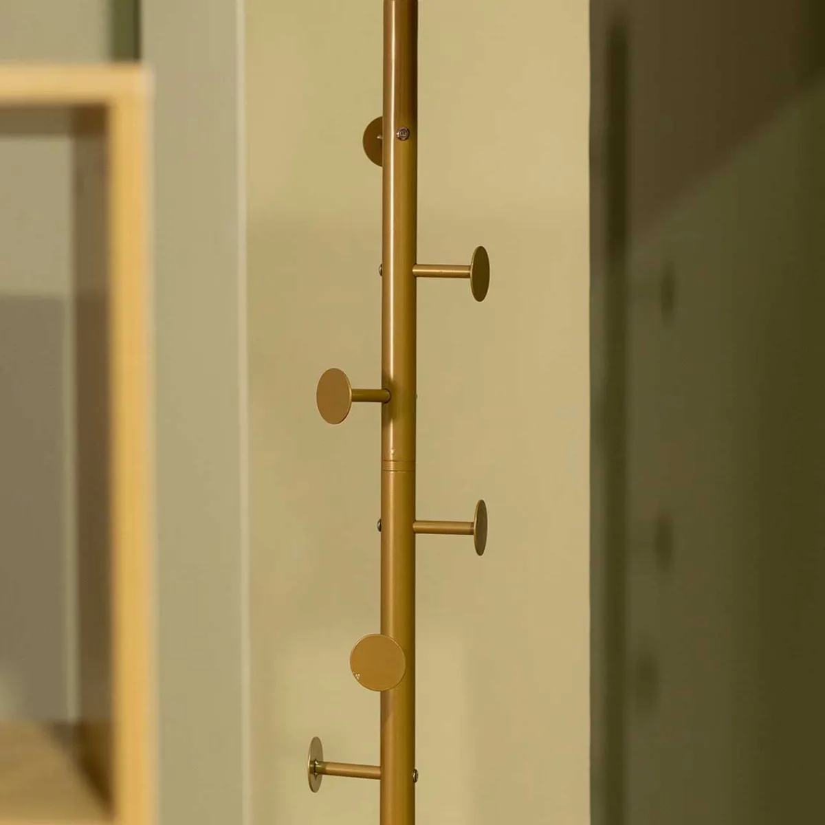 Perchero de pie dorado con 7 ganchos y base marmól | 177cm | Conoce este y más artículos que tenemos disponibles para tu closet . Almacenar y organizar tus armarios y roperos nunca fue tan fácil. Descubre la gama de Almacenaje hôma | Color: Dorado, Blanco | Medidas: 177x37x37cm | Material: Metal, Mármol