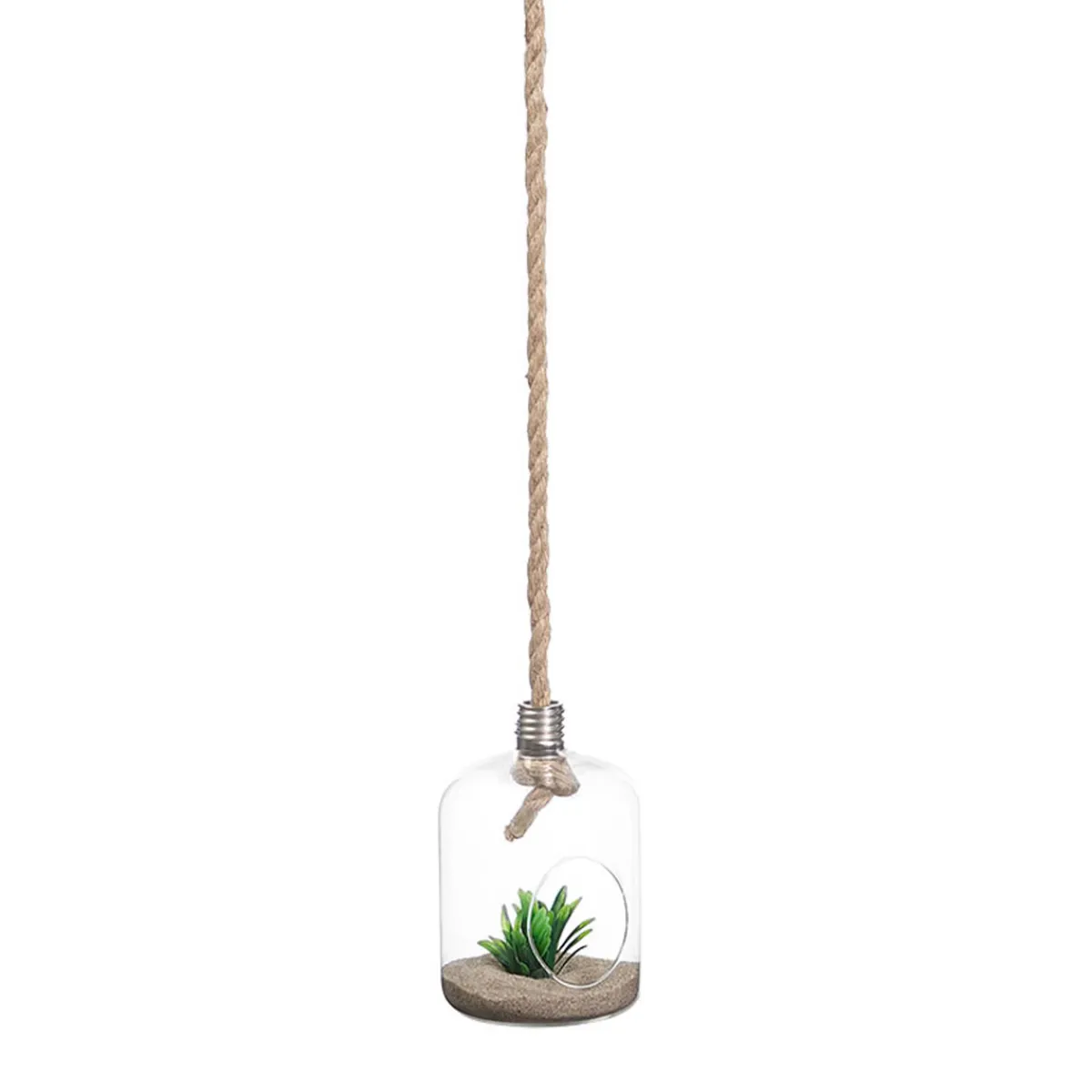 Plantas Y Flores Artificiales>Jarrón vidrio colgante con planta artificial 22cm