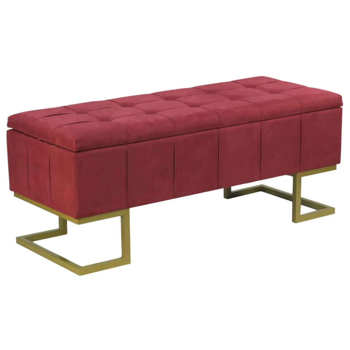 Banco doble LUCE de terciopelo Burdeos | 42x40x105cm | Descubre los pufs y taburetes que tenemos para ti. Los muebles Hôma están diseñados para Home Happy Living. Los mejores artículos de decoración están aquí. | Color: Burdeos | Tamaño: 42x40x105cm | Material: Terciopelo, Metal
