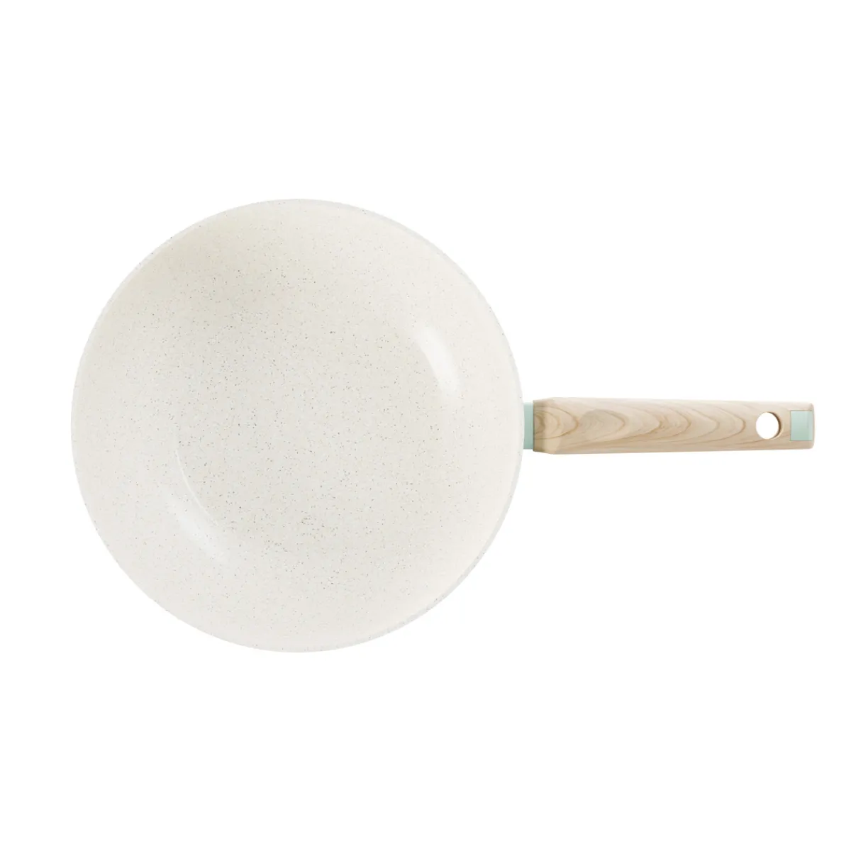 Wok Hera Antiadherente 28cm | Apto para Inducción, Placas Cerámicas, Cocinas de Gas o Eléctricas | Fabricado en aluminio forjado | Mango y asas con recubrimiento de silicona | Recubrimiento cerámico antiadherente y con fondo de inducción | Descubre todo para tu cocina y horno en homa.es . Ollas, sartenes y cazuelas para cualquier tipo de cocina | Color: Crudo, Azul claro, Beige | Medidas: 28cm | Material: Cerámica, Silicona