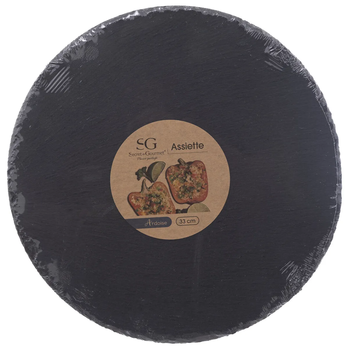 Tabla Redonda De Losa De Roca 33cm | Todo lo que tu mesa necesita está en homa.es, echa un vistazo a nuestra colección de vajillas, vasos, cubiertos, posavasos, soportes, etc. ¡Sirve con Happy Home Living, y todo sabrá mucho mejor! | Color: Negro | Medidas de la Tabla: 32×0.7cm | Material: Losa de roca | Marca: Secret D’Gourmet