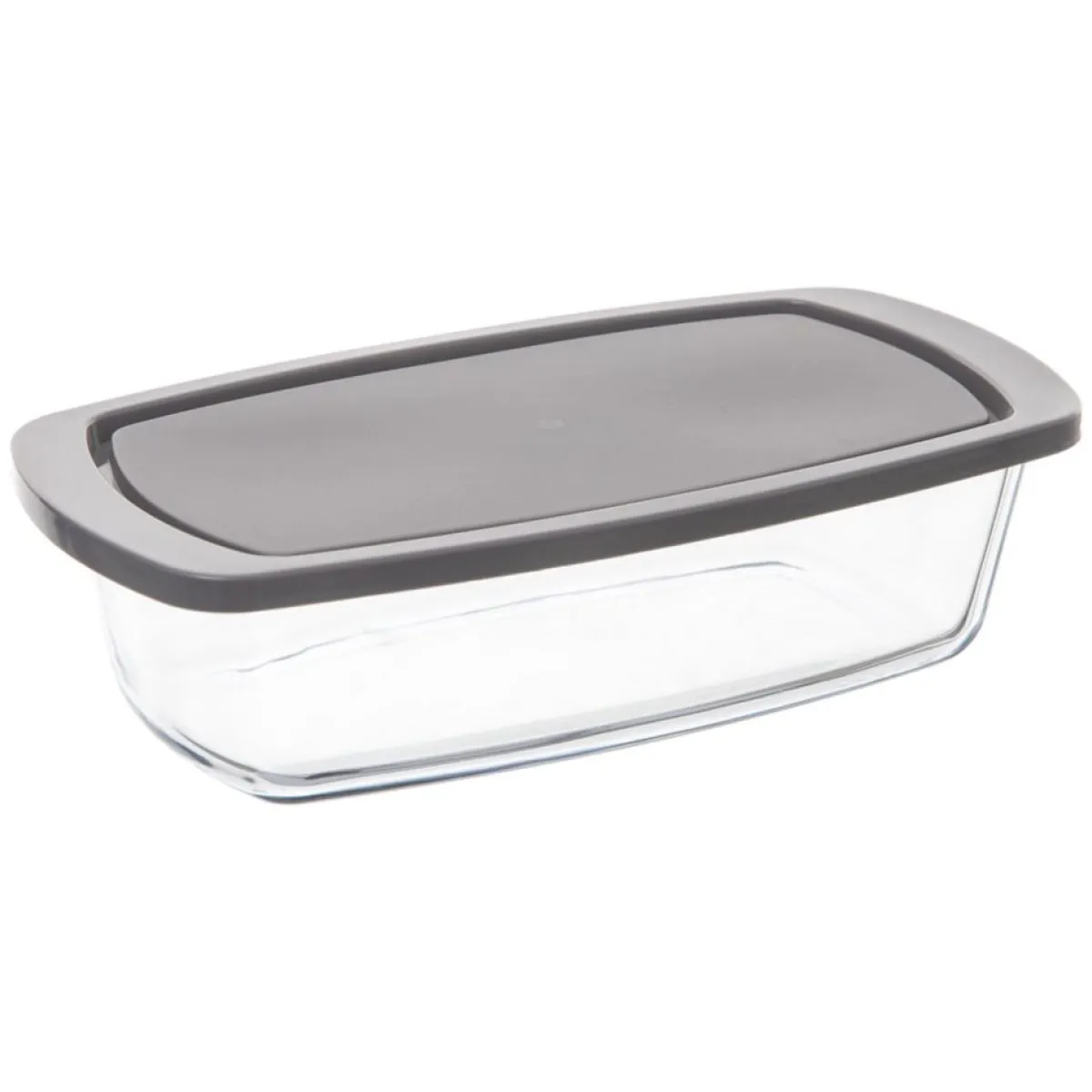 Molde para tartas rectangular de vidrio con tapa | Recipiente de Vidrio de borosilicato con tapa | Cocine, conserve, recaliente alimentos en el mismo recipiente sin tapa | Tapa no apta para lavavajillas, microondas y horno | Hasta 400° máx. | Congelador hasta -20° máx. | ¿Sabías que tu cocina puede ser el lugar más feliz del mundo? Echa un vistazo a nuestra gama de utensilios para una cocina llena de Happy Home Living. ¡Cocinar con los utensilios adecuados es mucho más fácil! | Color: Transparente, Gris | Medidas: 7.3×14.3×27.4cm | Material: Vidrio, Polipropileno | Capacidad: 1.8L