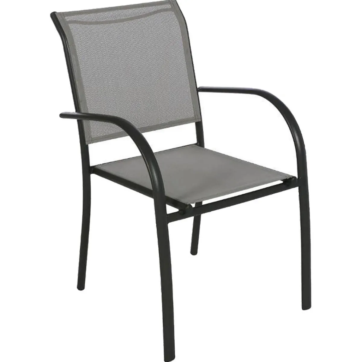 Silla PIAZZA galet y graphite | 88x65x56cm | Estructura de galet grafito y textilene | Con líneas redondeadas y revestimiento de textilene, ofrecen un asiento confortable | Producto apilable, fácil de almacenar para un verdadero ahorro de espacio | Para una mejor armonía, combina este producto con los de la línea Piazza | Estructura con tratamiento epoxi antioxidante | Color: Galet, Grafito | Medidas: 88x65x56cm | Material: Aluminio, Textilene | Colección: Piazza | Marca: Hespéride