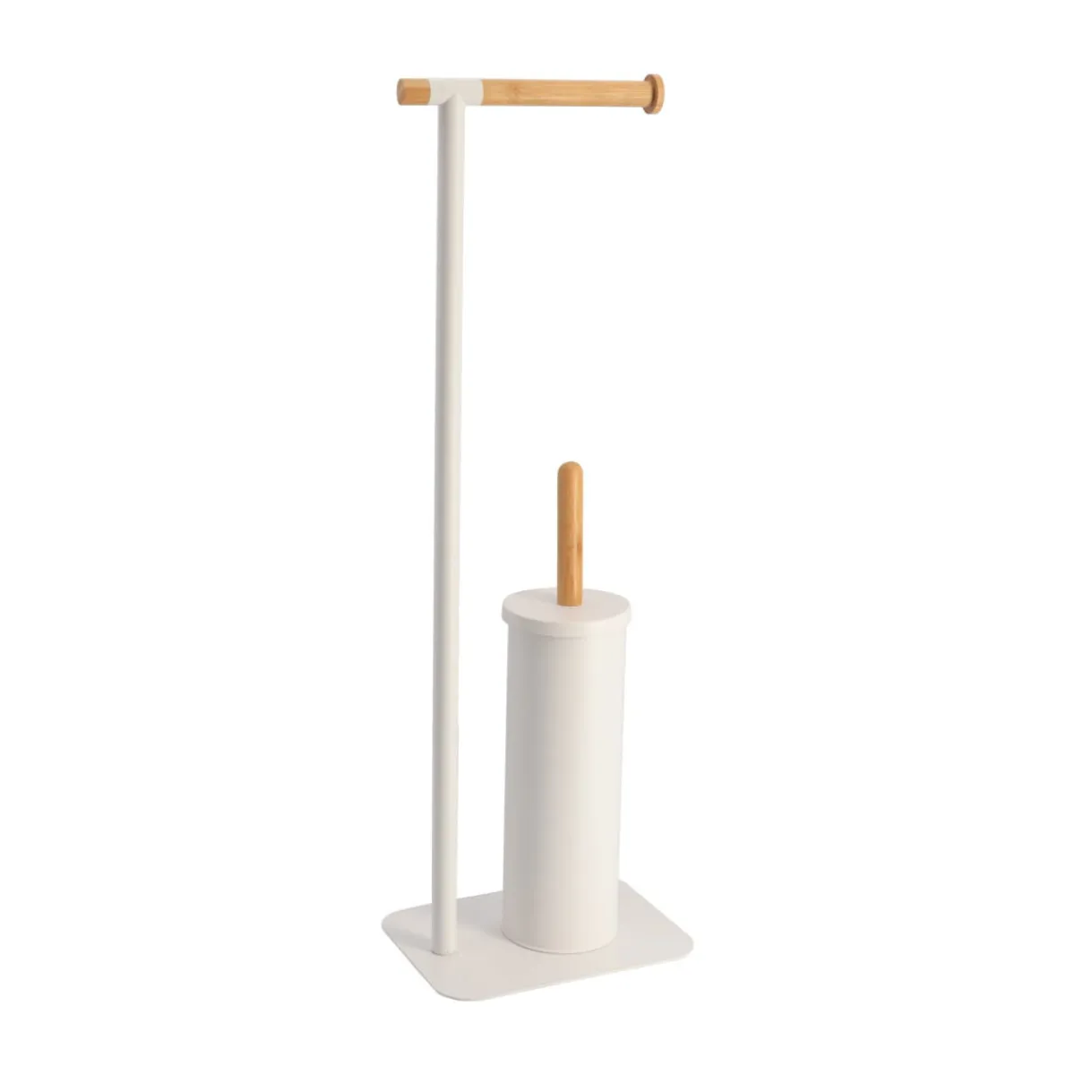 Portarrollos Con Escobilla De Metal/Bambú | Los accesorios y la organización del baño son esenciales para que tus rutinas más personales te traigan todo el bienestar que te mereces. ¡Conoce nuestra colección de accesorios para el baño! | Color: Blanco, Natural | Medidas: 69.5x16x22cm | Material: Metal, Bambú
