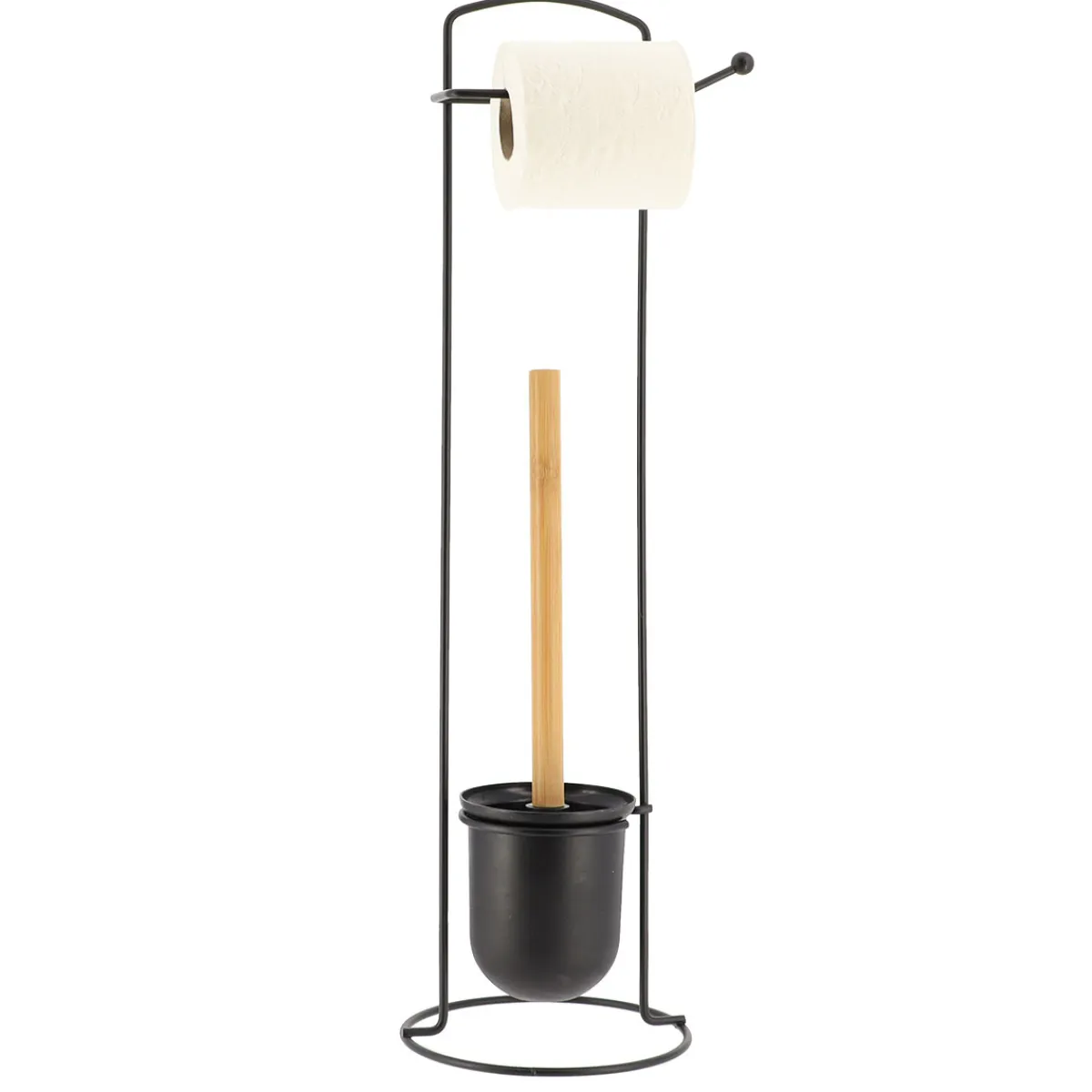 Portarrollos De Papel Higiénico Con Escobilla | Los accesorios y la organización del baño son esenciales para que tus rutinas más personales te traigan todo el bienestar que te mereces. ¡Conoce nuestra colección de accesorios para el baño! | Color: Negro, Beige | Medidas: 58.5x16x16cm | Material: Metal, Bambú