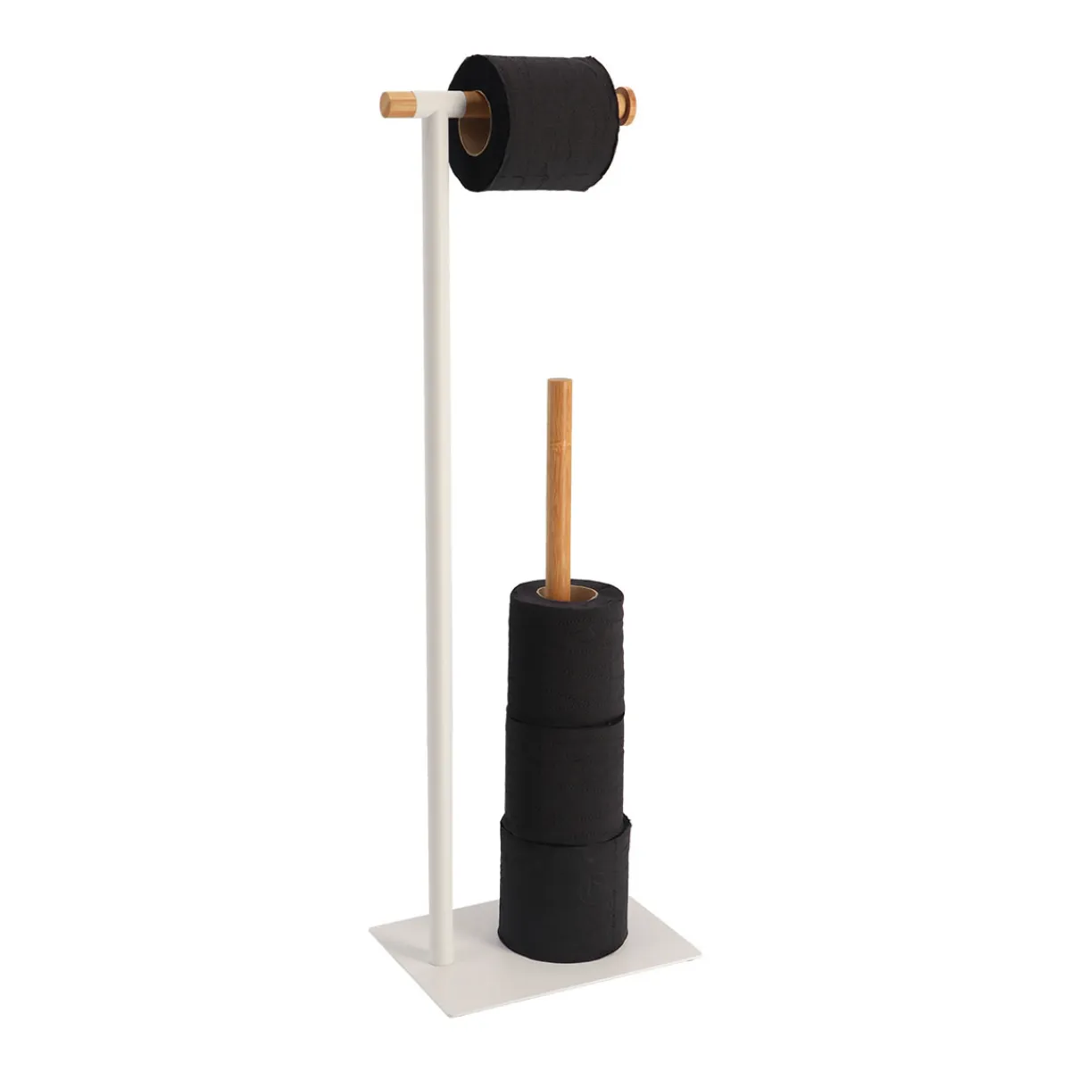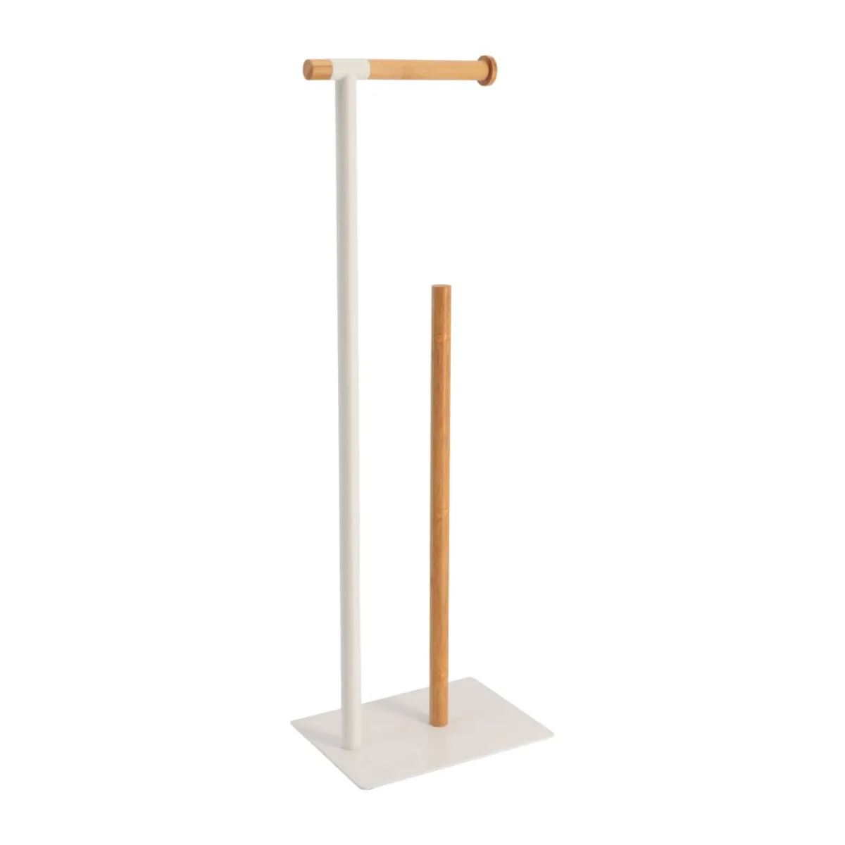 Portarrollos De Papel Higiénico Metal/Bambú | Los accesorios y la organización del baño son esenciales para que tus rutinas más personales te traigan todo el bienestar que te mereces. ¡Conoce nuestra colección de accesorios para el baño! | Color: Blanco, Natural | Medidas: 69.5x16x22cm | Material: Metal, Bambú