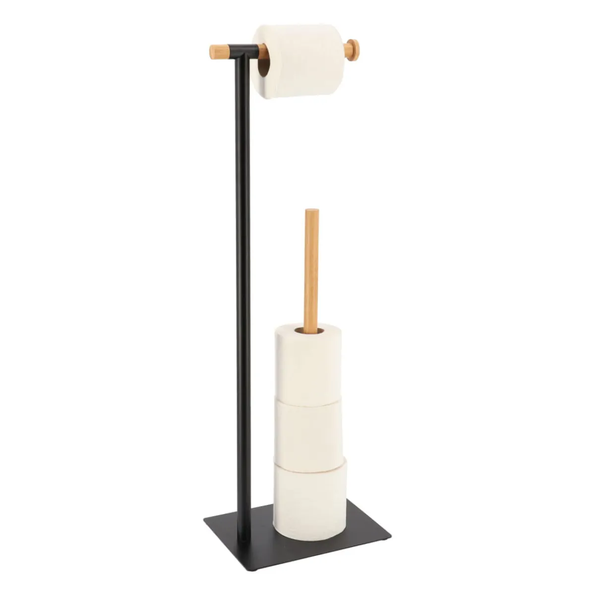 Portarrollos De Papel Higiénico Metal/Bambú | Los accesorios y la organización del baño son esenciales para que tus rutinas más personales te traigan todo el bienestar que te mereces. ¡Conoce nuestra colección de accesorios para el baño! | Color: Negro, Natural | Medidas: 69.5x16x22cm | Material: Metal, Bambú