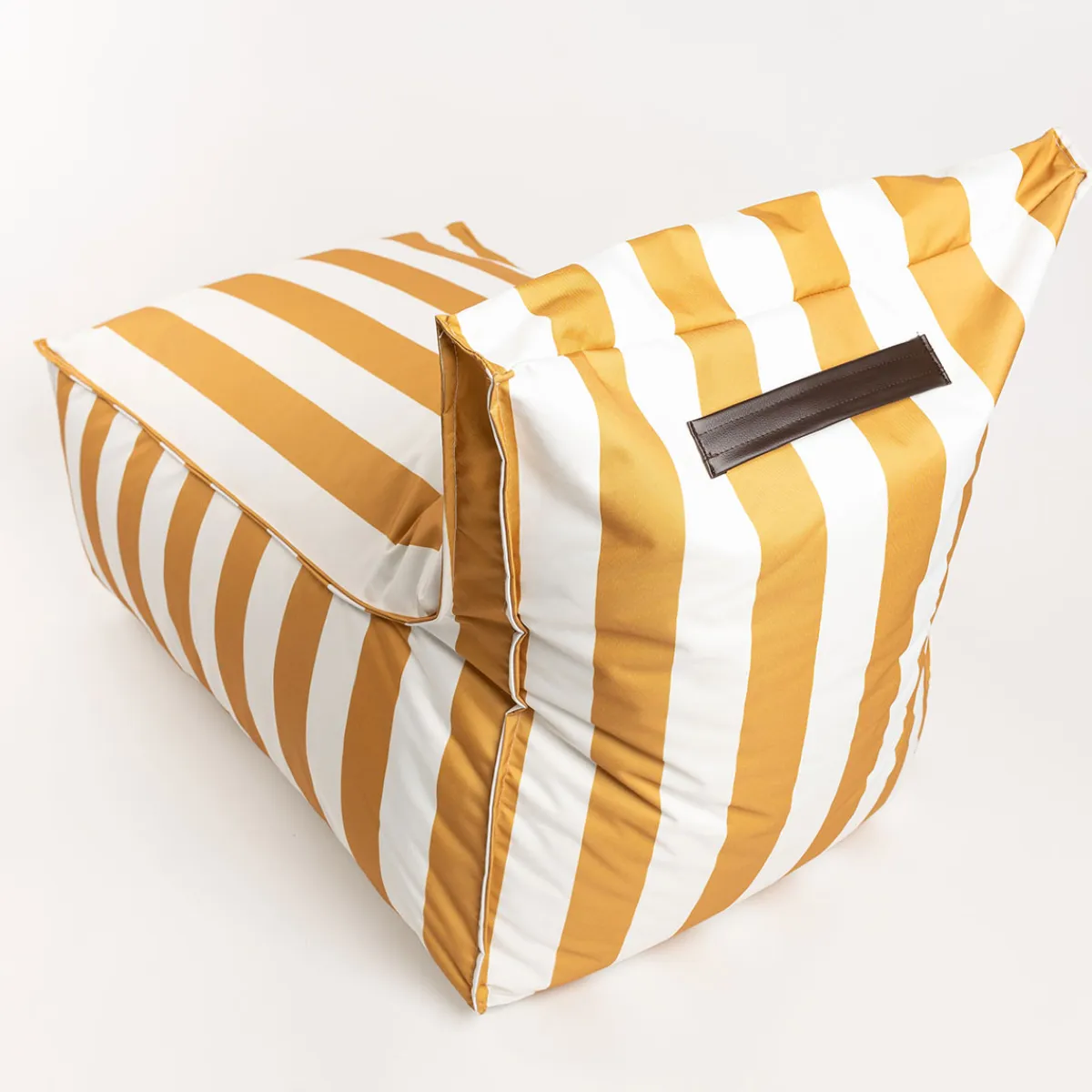 Puf sofa impermeable rayas blancas y amarillas | 110x75x75cm | Color: Blanco y amarillo | Medidas: 110x75x75cm | Material: Poliéster impermeable