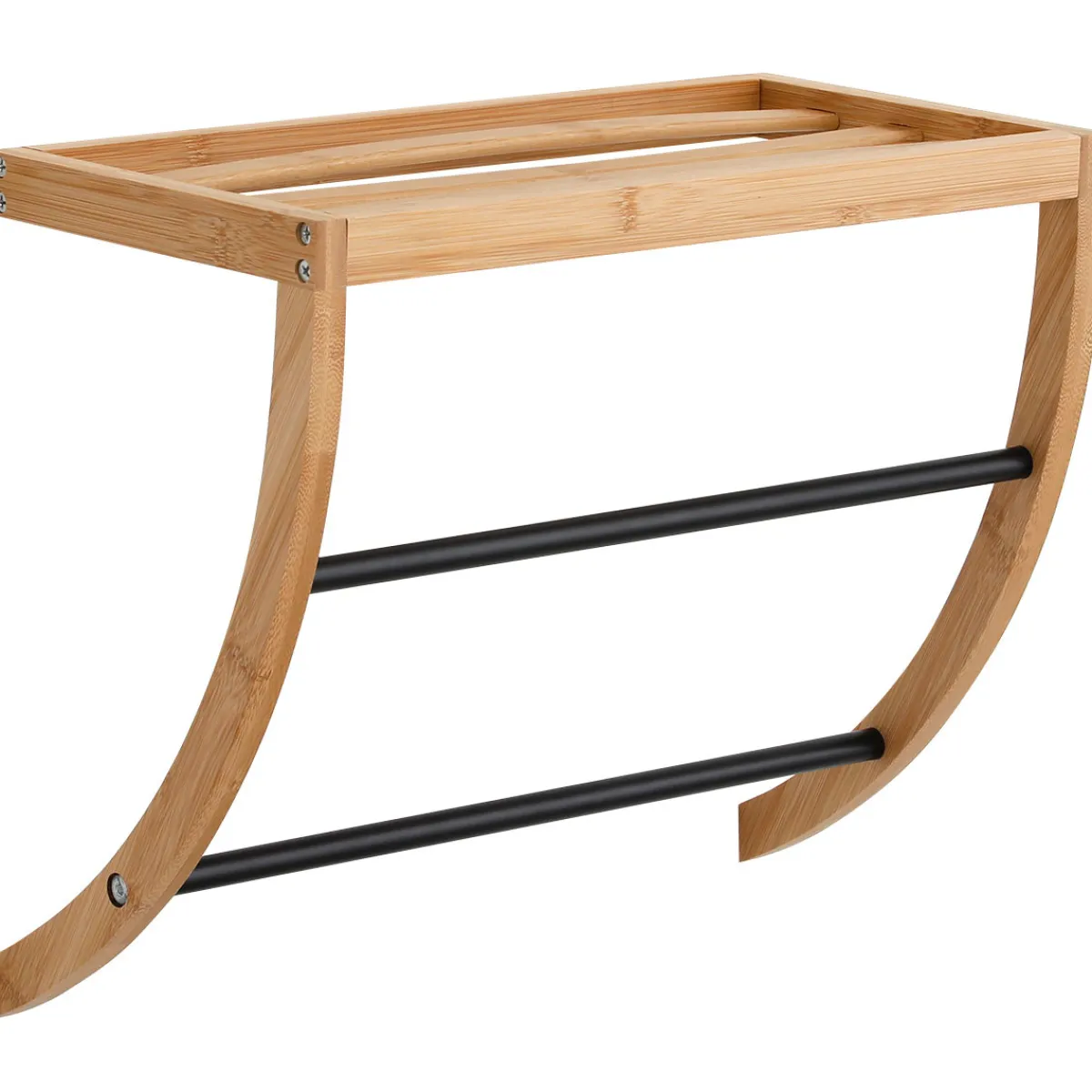 Toallero De Pared Con 2 Barras Y 1 Estante | Los accesorios y la organización del baño son esenciales para que tus rutinas más personales te traigan todo el bienestar que te mereces. ¡Conoce nuestra colección de accesorios para el baño! | Color: Negro, Marrón | Medidas: 34x20x45cm | Material: Bambú, Acero