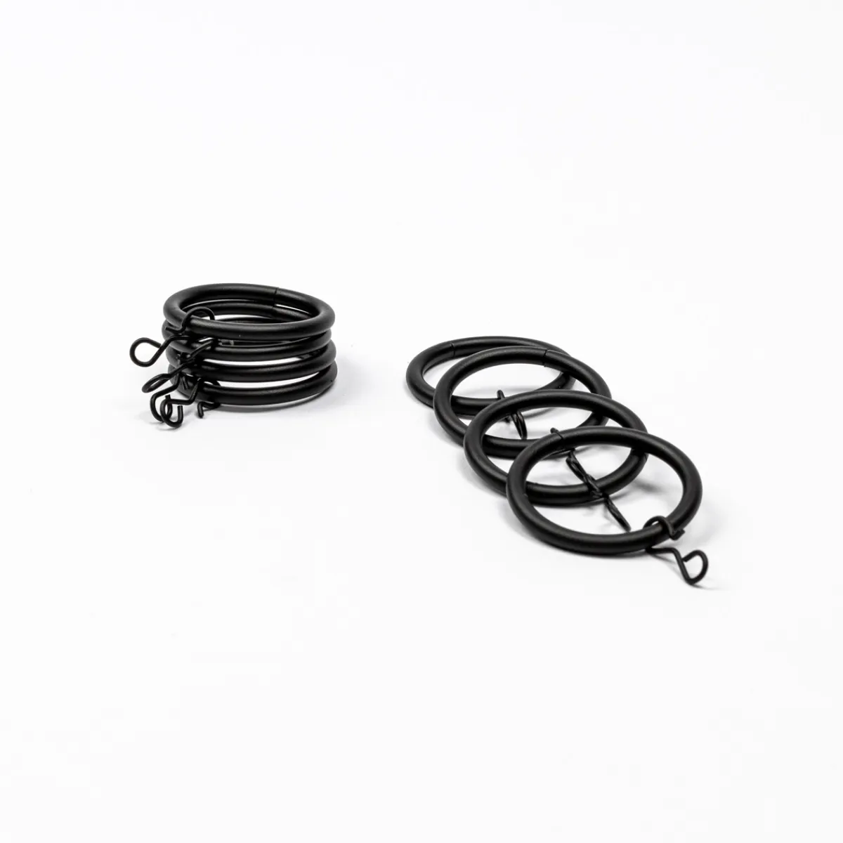Juego De 8 Anillas Negro Mate D20cm | Adorna tus ventanas y garantiza tu intimidad al máximo. Encuentra todos los accesorios para colgar tus cortinas y completar la decoración con el estilo que más te gusta. Contamos con diferentes opciones de soportes, barras de cortina, barras de extensión, rieles que se ajustan a la longitud, al contorno y a las esquinas de cada ventana. También disponemos de una selección de ganchos, anillas, remates todo esto en diferentes colores y materiales | Color: Negro Mate | Medidas: 20cm